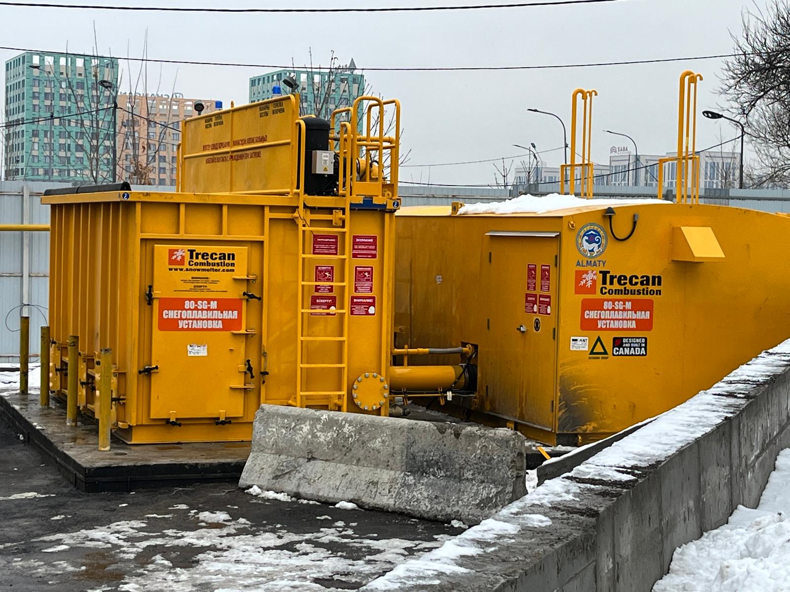 The Trecan 80-SG-M has a capacity of melting 80 tons of snow per hour, its two 9 million BTU/hr burners can melt 200 to 400 cubic yards of snow with an average snow density of 15 to 30 lbs/cu. ft. per hour.